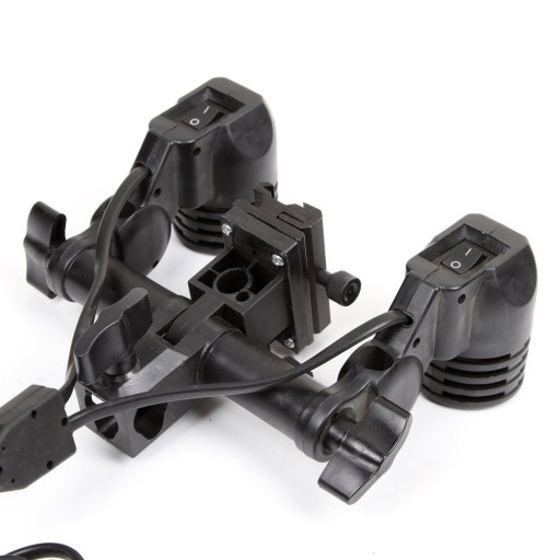 Profesjonalna oprawka podwójna do lamp błyskowych oraz lamp światła stałego i parasolek fotograficznych.