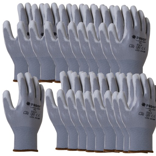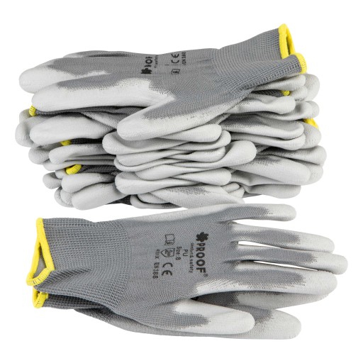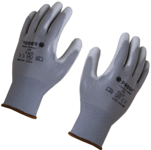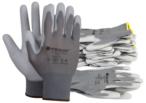 RĘKAWICE ROBOCZE OCHRONNE POWLEKANE POLIURETANEM PROOF SZARE R. 9 10 par