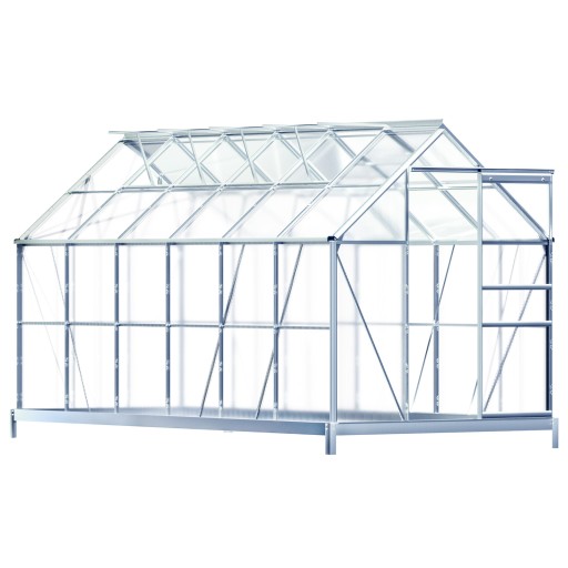 Szklarnia posiada 4 okna wentylacyjne dla optymalnej cyrkulacji powietrza oraz 2 rynny deszczowe. Rynna deszczowa kieruje strumień deszczu w dół szklarni.