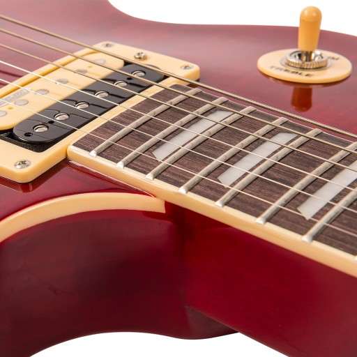 W mahoniowym korpusie tej gitary zamontowano dwa mini humbuckery firmy Wilkinson, które są odpowiedzialne za jej wspaniały, współczesny dźwięk oraz prawie nieskończony sustain. Od bluesa na przetworniku przy mostku, przez arpeggia na obu, aż do ostrego rocka na przystawce przy gryfie, V100 to gitary które zaskoczą każdego swoim uniwersalnym zastosowaniem.