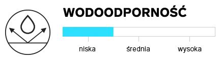 - hydrofobowa impregnacja materiału oraz klejone szwy krytyczne wspierają ochronę przed przedostawaniem się wilgoci.