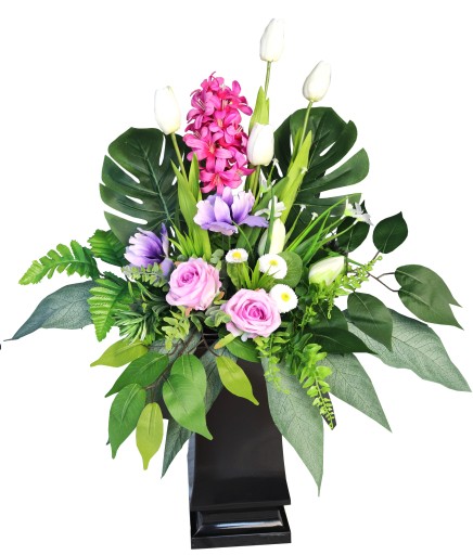 Wszystkie nasze kompozycje kwiatowe, są na podbiciu / wzmocnieniu z gałązek świerku. Dodaje to stabilności i trwałość.