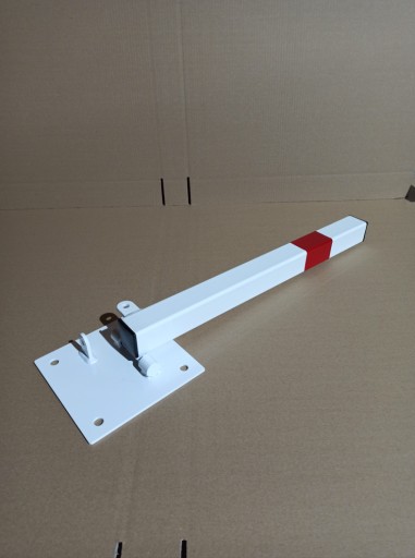 Słupek parkingowy składany - może być używany zarówno jako blokada parkingowa lub zapora uniemożliwiająca wjazd na miejsce postojowe lub drogę. Produkt posiada ocynk galwaniczny a następnie lakierowanie proszkowe, dodatkowo oklejoną czerwonymi odblaskami, dzięki czemu jest widoczny po zmroku oraz w niekorzystnych warunkach atmosferycznych. Słupek montowany do podłoża na stałe.