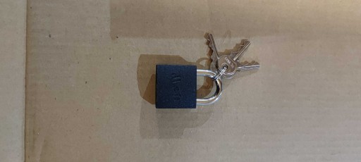 Blokada jest zamykana ręcznie na kłódkę (kłódka w zestawie z kompletem 3 kluczy)