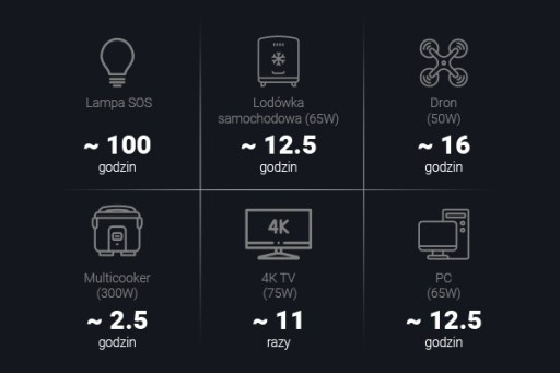 - Pojemność baterii: 218400 mAh