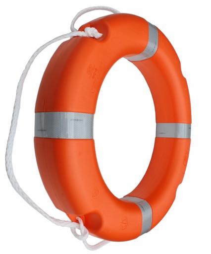 Koło ratunkowe z atestem pełnomorskim Polskiego Rejestru Statków oraz SOLAS. Posiada taśmę odblaskową oraz linę wokół koła. Na życzenie klienta dołączamy atest w formie pisemnej, wybity jest również na samym kole.