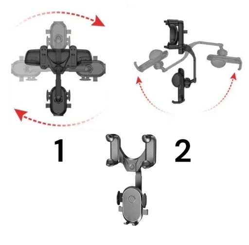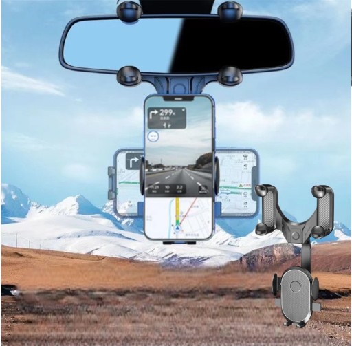1️⃣ Zmień ustawienie uchwytu jednym ruchem - jest zainstalowany na lusterku wstecznym samochodu, dzięki czemu można go regulować w każdej chwili. Zapewnia to większą wygodę i bezpieczeństwo podczas jazdy