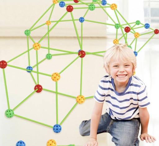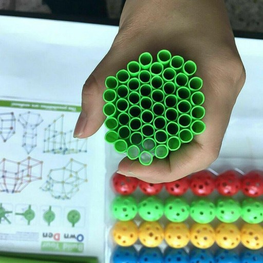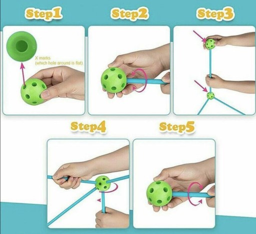 Budowa ze słomek jest bardzo prosta,wystarczy połączyć podłużną rurkę z okrągłym łącznikiem i tworzyć dowolne konstrukcje. łączniki pozwalają na połączenia słomek pod różnymi kątami 45,90 i 180 stopni.