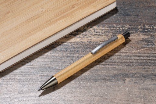 To wieczny ołówek wykonany ze specjalnego utwardzonego rysika, który daje komfort pisania podobny do świeżo zatemperowanego ołówka. Ołówek posiada mechanizm taki sam jak w długopisach. Korpus wykonany z bambusa z metalowymi elementami w kolorze grafitowym. Elegancki i stylowy.