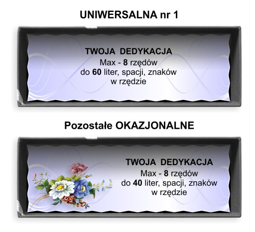 - Do wyboru różne tła do dedykacji w zależności od okoliczności