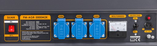 Agregat wytwarza prąd przemienny o napięciu 230V (3 gniazda) oraz prąd stały 12V (1 gniazdo). Doskonałe rozwiązanie na brak prądu w terenie. Wyposażony w woltomierz oraz bezpieczniki. Agregat posiada czujnik poziomu oleju który automatycznie wyłączy silnik w przypadku zbyt niskiego jego poziomu. Rozruch agregatu ręczny - za pomocą linki. Agregat stosowany w rzemiośle, budownictwie na działkach i ogrodach do prac z elektronarzędziami , pompami, oświetleniem.