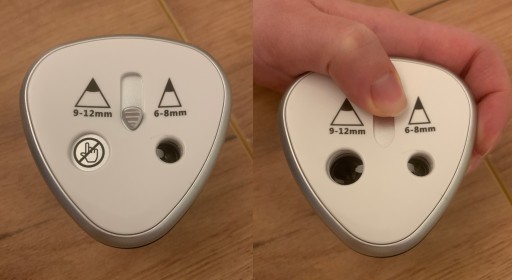 ✅ Temperówka wyposażona w przysłonę uniemożliwiającą włożenie palca przez małe dzieci. W celu zwolnienia blokady z dużego otworu, należy przesunąć środkowy suwak. Umożliwia to ostrzenie grubszych kredek JUMBO.
