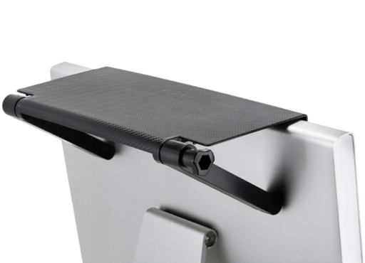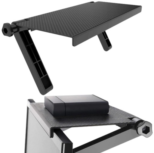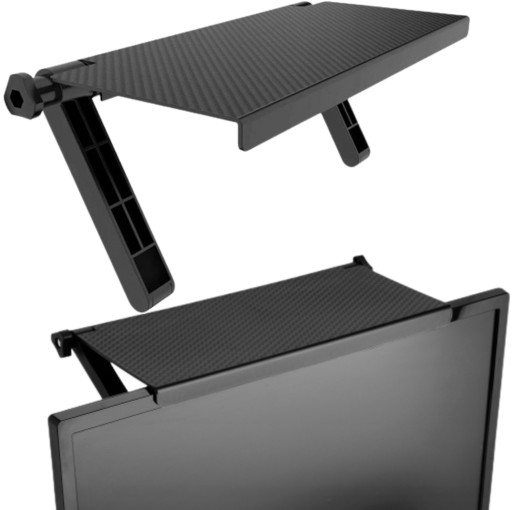Montaż półki nie wymaga użycia żadnych narzędzi. Regulowane nóżki pozwalają na bezinwazyjny montaż bez użycia jakichkolwiek narzędzi. Wystarczy przyłożyć półkę do monitora, dokręcić pokrętła nóżek i gotowe.