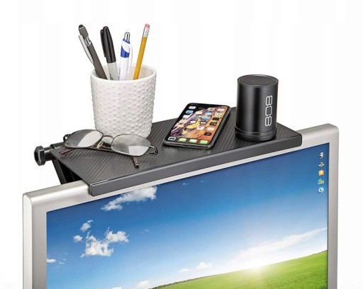Prezentujemy półkę nakładkę na telewizor lub monitor, dzięki której wykorzystasz przestrzeń nad ekranem do przechowywania. Stanowi ona idealny organizer i można ją zamontować na każdym monitorze lub telewizorze z płaskim ekranem. Dzięki regulowanym podpórkom nie potrzebujesz narzędzi do instalacji. Wystarczy położyć nakładkę na górnej części ekranu, wyregulować podpórki i zablokować dokręcając pokrętło!