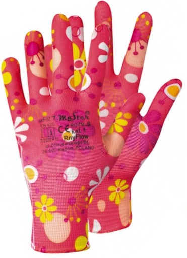 Rękawice ogrodowe wykonane z dzianiny poliestrowej, zakończone ściągaczem, bardzo ładny kwiatowy wzór,
