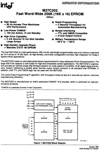27C202-70 Память EPROM 256 килобит 16k x 16 INTEL