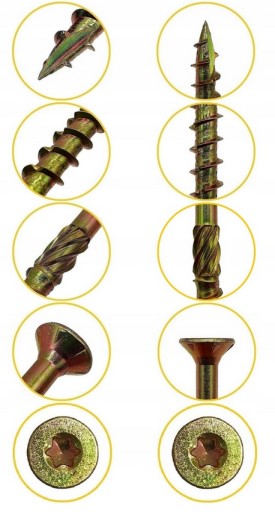 Wkręty przeznaczone są do połączeń elementów drewnianych i drewnopochodnych (płyta wiórowa, sklejka, drewno, płyta OSB, płyta MDF). Innowacyjna konstrukcja sprawia że praca z nimi to czysta przyjemność. Nie wymają wcześniejszego nawiercania. Głębokie i stabilne gniazdo TORX efektywnie przenosi moment obrotowy bez efektu wyskakującego bitu.
