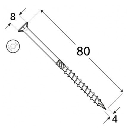 ВИНТЫ СТОЛЯНЫЕ ПО ДЕРЕВО CS 4x80 TORX С КОНИЧЕСКОЙ ГОЛОВКОЙ DOMAX 100 ШТ.