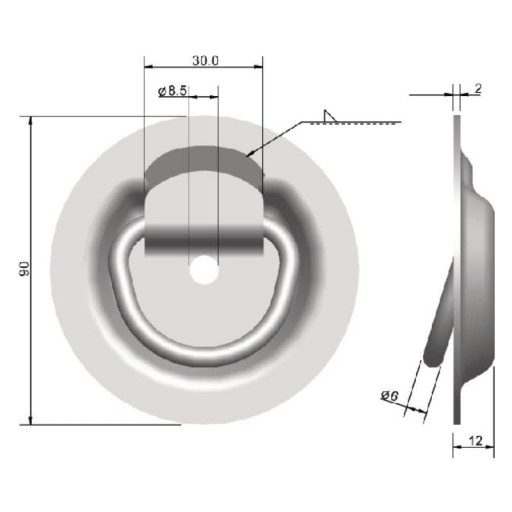 ВСТРАИВАЕМАЯ ГРУЗОВАЯ РУЧКА 90 мм, монтаж на 800 кг.