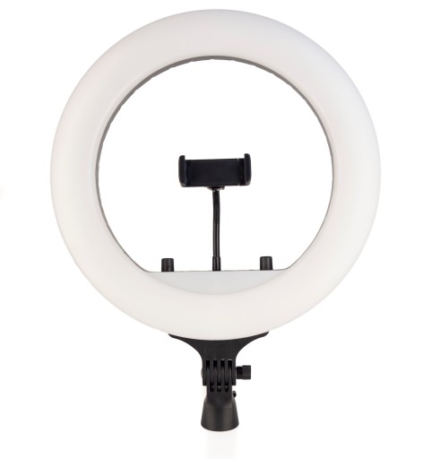 W centralnym miejscu lampy pierścieniowej umieszczone jest miejsce na 3 uchwyty na urządzenia o maksymalnej szerokości 85 mm. Posiada on elastyczną przedłużkę dzięki której można ustawić swój smartfon pod wieloma kątami. Jest to bardzo przydatne dla osób wykonujących selfie (np. prezentując wykonany makijaż), ale również do fotografowania produktów i martwej natury.