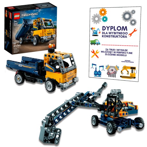 - 2w1 zbudujesz wywrotkę lub koparkę