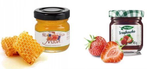 - dżemik truskawkowy (45g) i mód (40g), jako dodatki do herbatki,