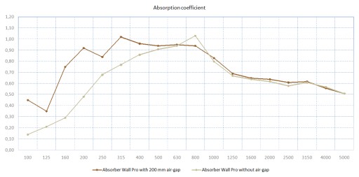 Panel WallPro pochłania szerokopasmowo w zakresie 100-20000 Hz. W przeciwieństwie do popularnych paneli wypełnionych wełną mineralną lub szklaną tutaj materiałem pochłaniającym jest sprasowana wełna z włókien poliestrowych, nowoczesny materiał o doskonałych parametrach akustycznych, neutralny dla zdrowia, niepylący, bezzapachowy, niechłonący wilgoci, trudnopalny, posiadający atesty do stosowania wewnątrz pomieszczeń. Panele są precyzyjnie docięte. Poprzez zastosowanie nowej technologii produkcji panel jest gładki powierzchniowo, nie ma tu mowy o żadnym pyleniu czy włoskach jak w przypadku filcu.