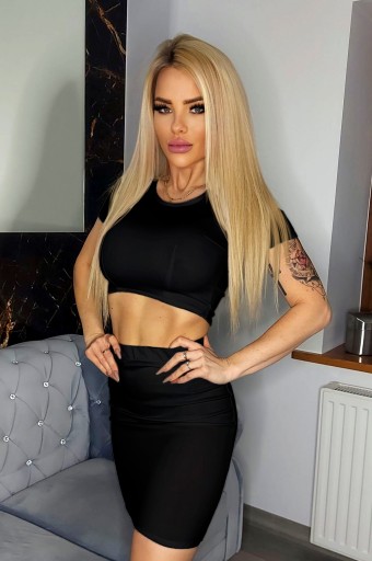 Spódniczki MIDI ołówkowej + krótkiego topu z krótkim rękawem.