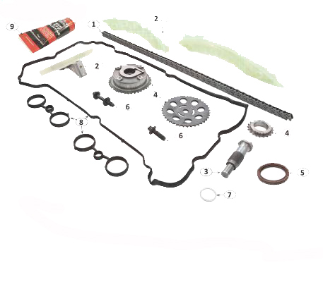 ZESTAW ZAWIERA (Z KOŁEM ŁAŃCUCH, NAPINACZ, PROWADNICA, ŚLIZGI, KOŁA, WARIATOR, USZCZELNIENIE)
