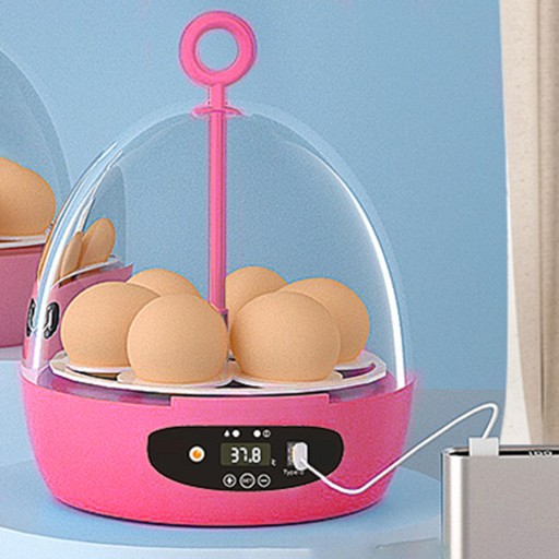 Mini 6 inkubator do jaj wylęgarnia taca do obracania jaj ze światłem dla drobiu instrukcja USB różowy
