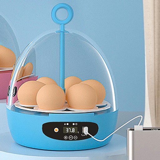 Mini 6 Inkubator do jaj Maszyna wylęgająca Obracarka do jaj ze światłem dla drobiu USB Automatyczna niebieska