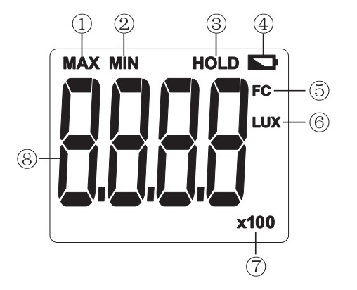 - Rozdzielczość: 1 lx (0~9999 lx); 1 cd (0~9999 cd)