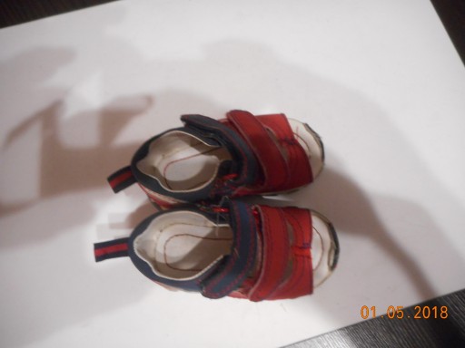 Sandałki dla dziecka które stawia pierwsze kroki w rozmiarze 18 o długości wkładki 11,4 cm. Stan jak na zdjęciach.