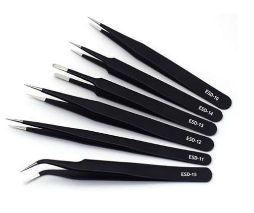 НАБОР МЕТАЛЛИЧЕСКИХ ESD TWICEERS 6 ШТ. Пинцеты Пинцеты
