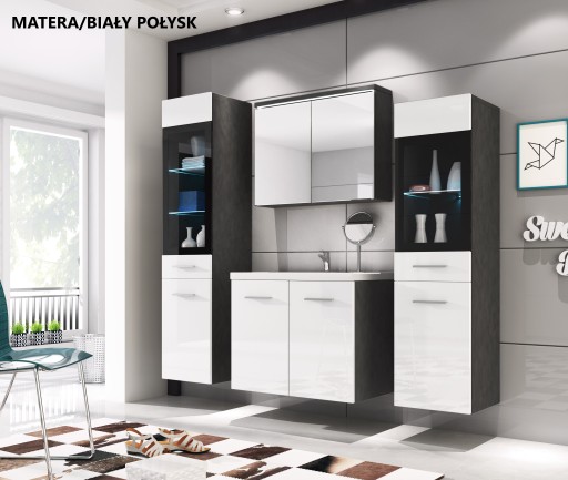 ZESTAW MEBLI ŁAZIENKOWYCH Z LUSTREM I UMYWALKĄ KOMPLET BIAŁY POŁYSK