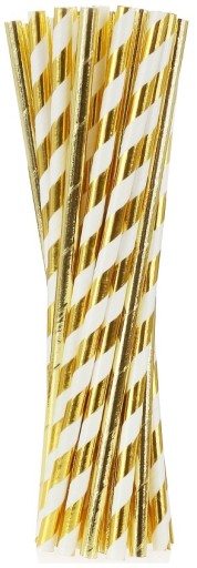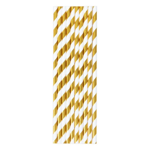 SŁOMKI PAPIEROWE BIAŁE W ZŁOTE PASKI 10 SZT