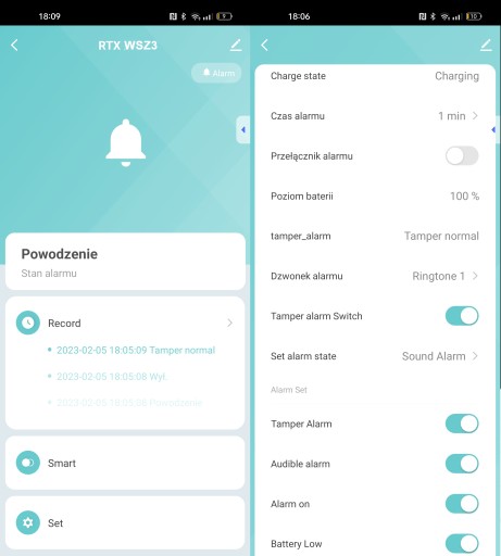 - Powiadomienia na telefonie o wystąpieniu alarmu