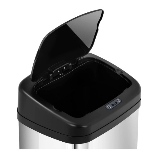 Pokrywa z tworzywa sztucznego może otwierać się i zamykać automatycznie. Czujnik reaguje na ruch w odległości do 15 cm od kosza. W razie potrzeby, np. przy opróżnianiu kosza, można uruchomić przycisk open, co zatrzyma pokrywę w pozycji otwartej.