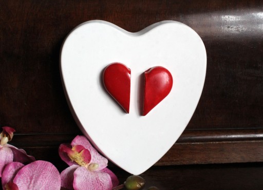 Serce wykonane ręcznie z gipsu ceramicznego. Czerwone serduszko jest naklejone, co daje efekt 3d. Serce można zawiesić na ścianie.