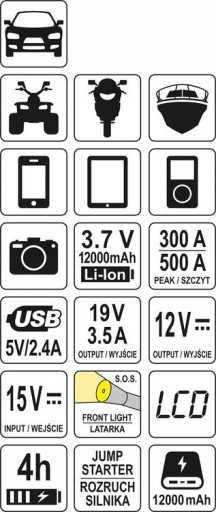 - pozwalają na uruchomienie samochodu, motocykla, quada, łodzi z silnikiem zaburtowym, sprzętu ogrodniczego