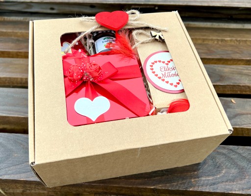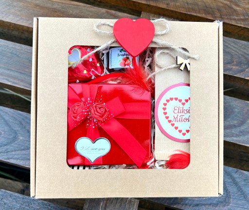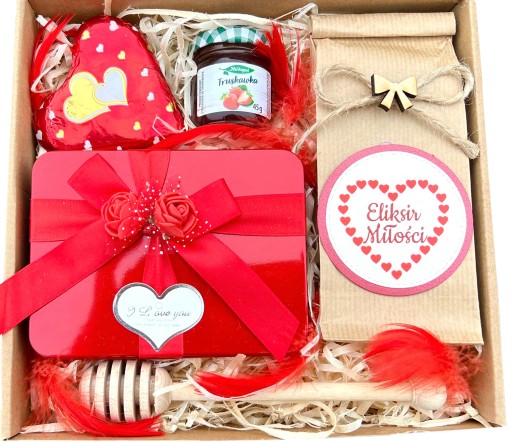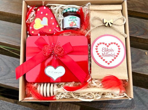 - całość zapakowana w pudełko - eko box z czerwonym serce.
