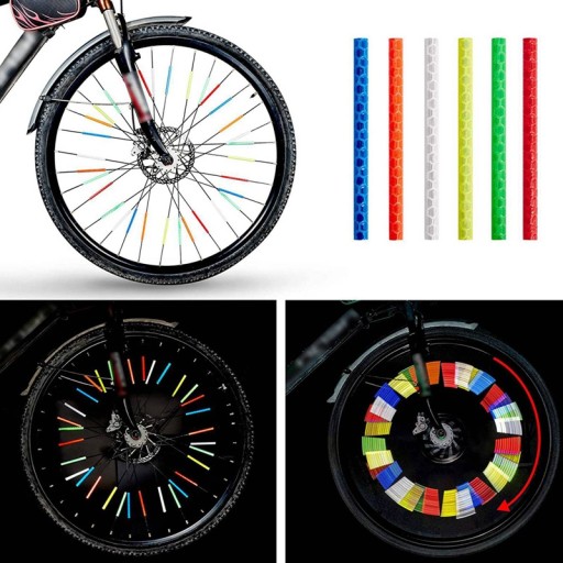 - Zestaw rurek odblaskowych 3M montowanych na szprychy kół roweru.
