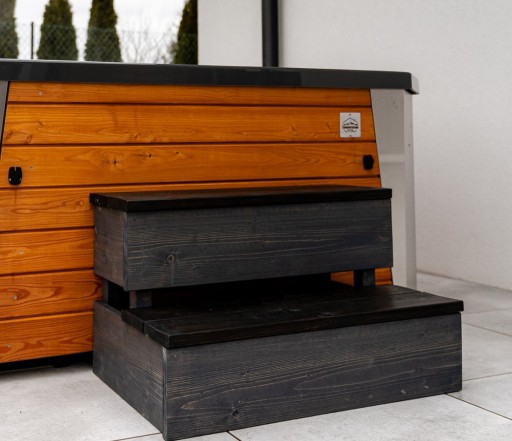 Solidne i stabilne schodki drewniane. Dwa stopnie pozwalają na wygodne wejście do wanny.