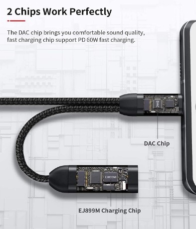 NIMASO dostarcza wydajny zintegrowany chip DAC, który umożliwia dźwięk Hi-Fi do 32 kHz. Chip DAC może również przekształcić cyfrowe sygnały audio w analogowe sygnały audio i zachować oryginalną jakość dźwięku słuchawek. Adapter USB C wykorzystuje wysokiej jakości chip szybkiego ładowania EJ899M. Adapter audio USB C obsługuje protokół ładowania do PD 60 W.