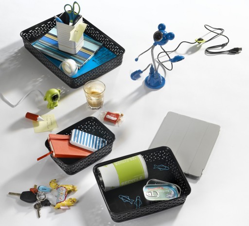 Koszyczki domowe do przechowywania najróżniejszych rzeczy. Koszyczki posiadają chropowate podłoże, dzięki któremu włożone do nich przedmioty nie będą się tak łatwo przesuwały podczas na przykład zamykaniu szuflady. Możemy w nich przechowywać od drobiazgów takich jak: klucze, artykuły biurowe, portfele, po większe rzeczy: odzież, książki, zeszyty. Na innych naszych aukcjach występują te koszyki w różnych kolorach oraz wielkościach. Można je z powodzeniem układać jeden a drugim.