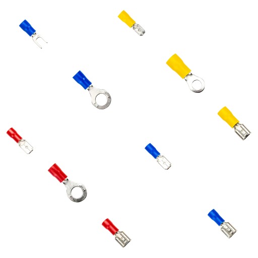 Konektory to końcówki przeznaczone do łączenia ze sobą przewodów elektrycznych. W zestawie znajduje się 10 różnych rozmiarów i kształtów – oczkowe, płaskie, widełkowe. Każdy z nich posiada inne przeznaczenie.