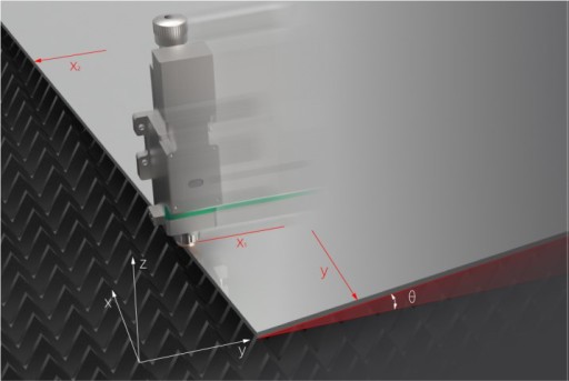 Wykrywany jest kąt nachylenia i położenia blachy.