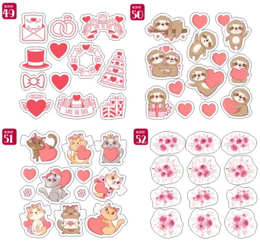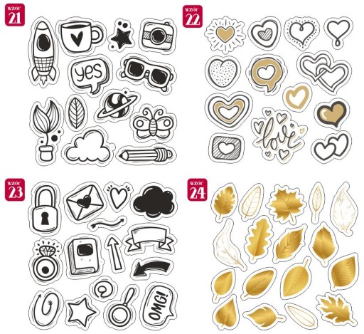 Czarne obrysy otaczające każdą naklejkę to linie cięcia, po których są wycinane.
