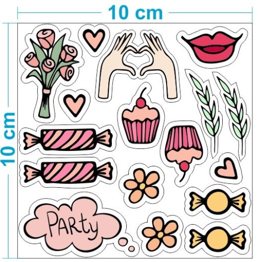 Pojedynczy arkusz z naklejkami ma wymiary 10x10cm.