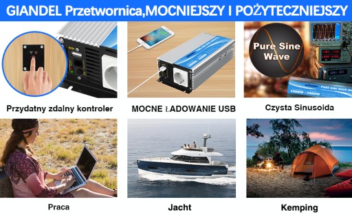 GIANDEL Przetwornica to niezbędnik podczas podróży, wakacji, biwakowania pod gołym niebem i domowych przerw w dostawie prądu.